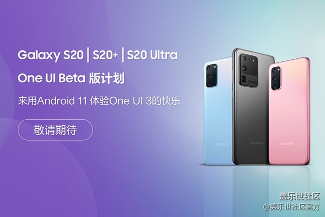 - 注冊O(shè)ne UI Beta 版計劃(Galaxy S20/S20+/S20 Ultra )體驗新的OS 【實時信息】11.16 更新尊敬的用戶,您好:感謝您對One UI Beta版計劃的支持因此我們預(yù)計將在 11月16日再次追加“注冊O(shè)ne UI Beta版本”的招募名額屆時請您按照以下步驟進行注冊————————————10.27 更新(已結(jié)束)尊敬的用戶,您好:感謝您對One UI Beta版計劃的支持,在昨日首批內(nèi)測招募后我們收到了諸多未能成功報名用戶的反饋,希望可以加入到One UI Beta版計劃中,優(yōu)先體驗One UI 3為了感謝星粉朋友們的支持所以我們預(yù)計將在 10月27日1