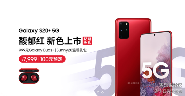 - 5月25日,三星聯(lián)合京東舉辦線上發(fā)布會,正式推出全新的配色三星Galaxy?S20+?5G「馥郁紅」,這款蘊含著溫暖有溫度的紅色十分吸引眼球,三星蓋樂世社區(qū)搶先為大家?guī)砹巳荊alaxy S20+ 5G馥郁紅的真機美圖賞,下面我們就一起來看看吧!三星Galaxy?S20+?5G「馥郁紅」背部同樣采用了康寧大猩猩第六代玻璃,紅色的機身十分具有質(zhì)感,整體的時尚感非常強烈。三星Galaxy?S20+?5G「馥郁紅」后置配備四攝像頭設(shè)計,配備6400像素長焦攝像頭、1200萬像素超廣角鏡頭、1200萬像素超廣角鏡頭、Tof景深攝像頭。同時支持30x超視覺空間變焦 *,將圖片放大30倍拉近遠景高清細