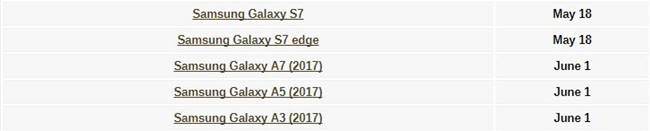 - 4月23日,三星Galaxy Note 8國行版獲得了安卓8.0更新,現(xiàn)在三星Galaxy Note 8用戶終于可以吃上“奧利奧”了。除了三星Galaxy Note 8,三星Galaxy S7/S7 edge等機(jī)型也將會(huì)獲得安卓8.0更新,但是遺憾的是,這一計(jì)劃被推遲了。4月23日,據(jù)GSMArena報(bào)道,三星原定計(jì)劃是在4月下旬向Galaxy S7、Galaxy S7 edge推送安卓8.0更新,這一更新計(jì)劃現(xiàn)在推遲至5月18日。受此影響的不止Galaxy S7、Galaxy S7 edge,同時(shí)還有三星Galaxy A系列手機(jī)。如圖所示,2017款三星Galaxy A7、Galaxy A5