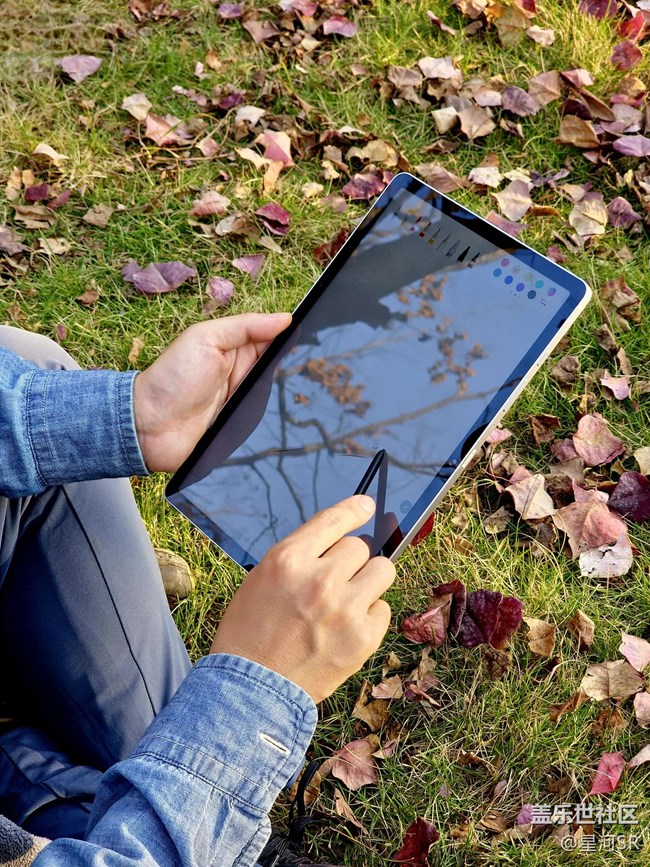 - 當(dāng)銀灰色的金屬背板落在鋪滿落葉的草坪上,Galaxy Tab S10 Lite的「輕」與「雅」便有了具象的模樣。 它沒有夸張的設(shè)計(jì),背板僅用簡潔的“SAMSUNG”標(biāo)識和一顆攝像頭做點(diǎn)綴,帶著細(xì)膩的高級感;邊角的微弧過渡,讓手持時的貼合度柔和了不少——就像圖里那樣,握著它在戶外寫寫畫畫,也不會覺得硌手。 正面的窄邊框屏幕,點(diǎn)亮后是柔和的色彩,日常刷應(yīng)用、看內(nèi)容都很清爽;搭配手寫筆時,屏幕的反光在陽光下也不算刺眼,反而襯著秋日的樹影,多了點(diǎn)松弛的氛圍感。 哪怕只是隨手放一朵小野花在背板上,簡潔的設(shè)計(jì)也能讓它變成「自然風(fēng)背景板」——這大概就是輕量平板的魅力:不用刻意張揚(yáng),卻能悄悄融入生活里的每一