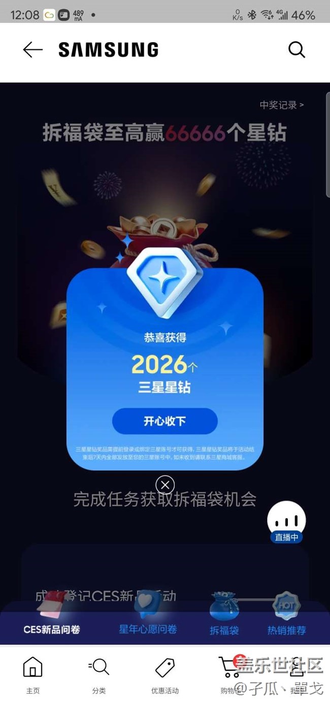 - 恭喜以下用戶中獎(jiǎng),請(qǐng)及時(shí)到個(gè)人中心,消費(fèi)紀(jì)錄查詢獎(jiǎng)勵(lì),謝謝各位星粉,本周版塊活動(dòng)上線啦~活動(dòng)已在本版塊置頂,大家參與討論將有機(jī)會(huì)獲得獎(jiǎng)品哦!三星每年都有各種大促活動(dòng),疊加大促期間各種活動(dòng),相應(yīng)的就更加優(yōu)惠了,還有更多的贈(zèng)品。你是早享黨還是晚省黨?你的消費(fèi)節(jié)奏你定義。一、本期活動(dòng)主題:【你的消費(fèi)節(jié)奏你定義】二、【參與方式】:在本帖下進(jìn)行回復(fù)三、【回帖時(shí)間】:2025年10月29日~2025年11月4日四、【開獎(jiǎng)時(shí)間】:2025年12月五、【獎(jiǎng)項(xiàng)設(shè)置】:按規(guī)則回復(fù),從所有參與者中隨機(jī)抽取20人,每人獎(jiǎng)勵(lì)200星鉆。六、【活動(dòng)規(guī)則】:- 每周活動(dòng)結(jié)束后,社區(qū)會(huì)在符合要求的參與用戶中,采取隨機(jī)抽選的方