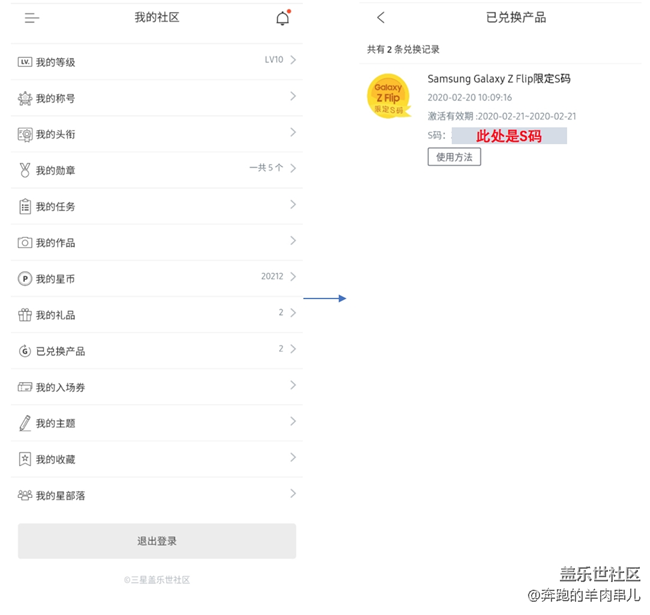 - 感謝各位小伙伴對(duì)Samsung Galaxy Z Flip的喜愛,S碼搶購(gòu)的火爆程度小串兒已經(jīng)感受到了。那么,搶到Samsung Galaxy Z Flip 的S碼的用戶應(yīng)該怎么使用呢?操作如下:↓↓↓搶購(gòu)成功后→我的社區(qū)→已兌換產(chǎn)品→兌換→即可得到S碼 進(jìn)入Samsung Galaxy Z Flip搶購(gòu)頁(yè)面→登錄三星賬號(hào)(需與在社區(qū)搶購(gòu)S碼時(shí)的賬號(hào)一致)選擇顏色及規(guī)格等參數(shù)(以Note10+為例)→立即購(gòu)買→填寫個(gè)人信息→輸入在社區(qū)搶到的S碼→提交訂單并付款即可 重要信息Samsung Galaxy Z Flip 的S碼僅表示有Samsung Galaxy Z Flip手機(jī)的優(yōu)先搶購(gòu)資格數(shù)量