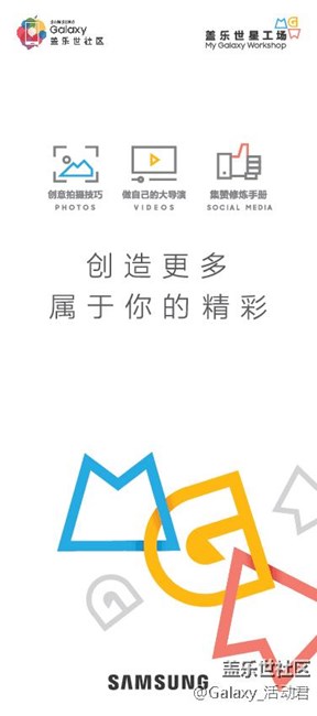- 蓋樂世星工場(chǎng)--星粉活動(dòng)開始招募啦!3月26日蓋樂世社區(qū)招募星粉參與最新旗艦手機(jī)Galaxy S7線下體驗(yàn)活動(dòng)!星粉們的福利又來嘍!詳情請(qǐng)大家繼續(xù)往下戳! 你是手機(jī)達(dá)人嗎?愛好拍照,卻又不甘平庸嗎?S7帶你走進(jìn)"不一樣"的新暢想!Galaxy S7真機(jī)體驗(yàn),極限美拍比拼!就在3月26日上海!【活動(dòng)時(shí)間】2016年3月26日 18:30~20:30【活動(dòng)地點(diǎn)】三星南京東路體驗(yàn)店(上海市黃浦區(qū)南京東路546號(hào)5F) 【活動(dòng)內(nèi)容】創(chuàng)意拍攝,Samsung Pay,趣味PK,誰是自拍王【劇情樂透透】Galaxy S7擁有強(qiáng)大的拍攝功能,專業(yè)的Smc會(huì)帶領(lǐng)