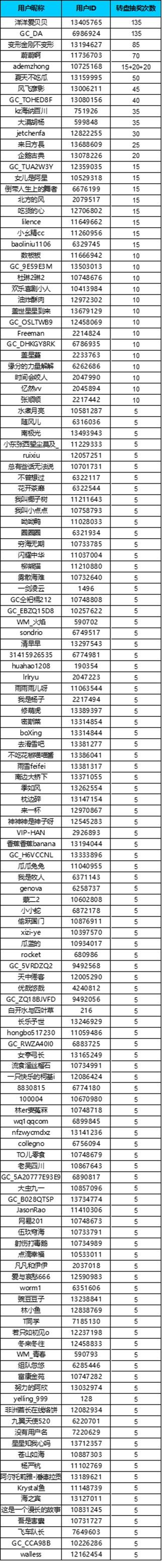 - 轉(zhuǎn)盤(pán)抽獎(jiǎng)鏈接如下:https://www.samsungmembers.cn/event/clancompetition23021500 轉(zhuǎn)盤(pán)抽獎(jiǎng)日期:2.16-2.19*獎(jiǎng)品數(shù)量每日更新,用戶(hù)可分多日抽獎(jiǎng),中獎(jiǎng)幾率更大喲~*實(shí)物獎(jiǎng)品需將信息(身份證正反面、收貨地址、姓名、電話(huà)、獲獎(jiǎng)ID)2月23日前郵件發(fā)送至keke.yan@cheilpengtai.com。獎(jiǎng)品將在15-30個(gè)工作日內(nèi)寄出*京東e卡和星鉆獎(jiǎng)勵(lì)請(qǐng)?jiān)谖业亩Y品處查看以下為轉(zhuǎn)盤(pán)抽獎(jiǎng)次數(shù)名單如有異議,請(qǐng)于2023.2.10 18:00前反饋至管理員處,如逾期則視為無(wú)異議隨著新年臨近,今年很多小伙伴紛紛將返鄉(xiāng)提上了日程。對(duì)于家鄉(xiāng),每個(gè)