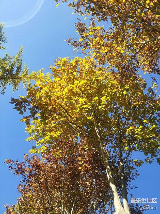- 秋天,金*,藍藍的天空,讓人精神抖擻。