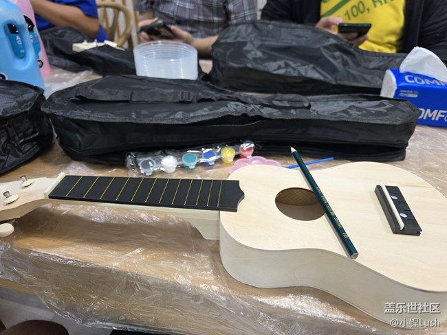- 參加了三星蓋樂世社區(qū)10周年的慶生活動(dòng),真的是一次特別難忘的體驗(yàn)。一到現(xiàn)場(chǎng),社區(qū)就為我們準(zhǔn)備了一份很有意義的禮物——一把可以自己動(dòng)手組裝的尤克里里。我們不僅要給它綁弦、調(diào)音(大部分還是靠“酋長(zhǎng)”幫忙 ??),還用丙烯顏料在琴身上親手繪制屬于自己的圖案,并融入蓋樂世社區(qū)10周年的元素。大家都特別用心設(shè)計(jì),色彩繽紛,也寄托了對(duì)社區(qū)的美好祝愿。當(dāng)所有人都完成自己的DIY作品后,我們一起彈唱了一首《生日快樂》,并錄了下來,送給蓋樂世社區(qū)作為特別的十周年禮物。那一刻真的很溫馨,仿佛我們就是社區(qū)的一部分,一起陪伴它成長(zhǎng)。慶生當(dāng)然少不了蛋糕!切蛋糕、許愿、分享甜蜜,邊吃邊聊,最后合影留念,把這份歡樂定格。從