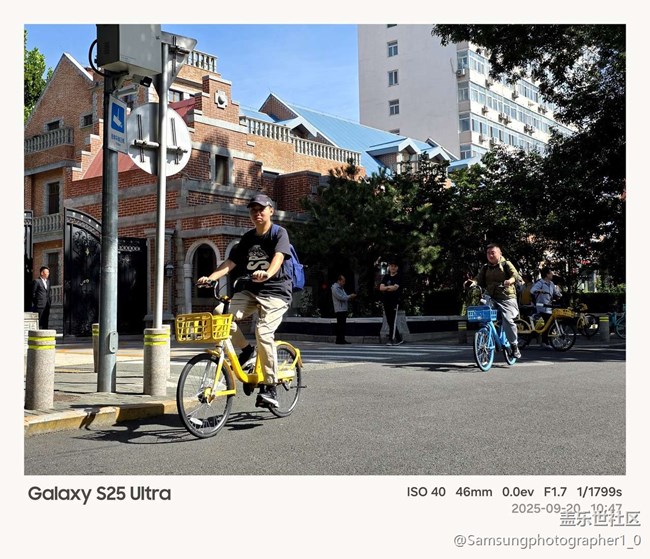 - 這次星部落的活動(dòng)是騎著單穿越東交民巷,車鈴輕響,驚起鴿群。我自己的Galaxy S23 Ultra,也體驗(yàn)了一把剛升級(jí)到UI8.0的S25 Ultra,兩代鏡頭像跨越時(shí)空的眼睛。紅磚墻在9月20日的陽(yáng)光下泛著1901年的暖,我先用23 Ultra的10倍長(zhǎng)焦擒住圣米厄爾教堂的尖頂,磚縫里的青苔都被ISO 100凝固;隨即換到25 Ultra,F(xiàn)1.7大光圈吞噬陰影,1/2000秒把同行騎友的笑聲釘在法式拱廊。車胎碾過百年鐵軌,我在巷口剎車,用 Expert RAW 把使館界的灰與綠壓進(jìn)同一幀,像把《辛丑條約》的沉痛與今日鴿哨一起存進(jìn)相冊(cè)。風(fēng)掠過,兩顆鏡頭同時(shí)記錄下車把轉(zhuǎn)向的弧線——?dú)v史在此刻完