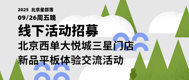 - 【活動(dòng)名稱】 三星蓋樂世社區(qū)平板新品體驗(yàn)+夜拍活動(dòng) 【活動(dòng)地點(diǎn)】 北京西單大悅城三星門店 【活動(dòng)時(shí)間】 2025年9月26日周五晚上19:00集合,已報(bào)名且被正式通知獲得參與資格的星粉現(xiàn)場(chǎng)簽到后進(jìn)場(chǎng)。 如有變更請(qǐng)以最新通知為準(zhǔn)。 【活動(dòng)流程】 北京星部落星粉一起到西單大悅城三星門店,線下體驗(yàn)平板新品。 1.成員集合簽到打卡(19:00) 2.邀請(qǐng)三星西單店門店店長(zhǎng)店員介紹平板產(chǎn)品 3.現(xiàn)場(chǎng)自行體驗(yàn)產(chǎn)品 4.合影留念(20:00) 5.全體成員聚餐,夜拍西單商業(yè)區(qū)夜景