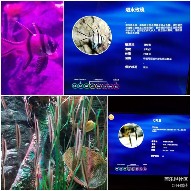 - 海洋約占地球表面積的71%,說是地球,然而卻是目前人類了解到的宇宙中唯一有液態(tài)水的星球,說白了,應(yīng)該是名副其實(shí)的“水球“。然而我們?nèi)祟悓?duì)海洋其實(shí)有著太多的不了解。借由蓋樂世社區(qū)參與到海洋探索中心的游覽活動(dòng)中,也算揭開了一點(diǎn)點(diǎn)海洋神秘的面紗吧!形態(tài)各異的各種魚類是海洋生物中最為常見也是最容易被我們辨識(shí)的。把自己孩子含在嘴里撫養(yǎng)的泗水玫瑰魚爸爸真是把孩子當(dāng)成寶貝啦!刀片魚是豎過來游的,身體真的比刀片還?。∮卸镜耐该魉冈诓煌瑹艄庀掠骋r出各種幻彩的顏色,美輪美奐。小型魚類非常多,在這里可以看到小丑魚尼莫家族的幾乎所有成員,不知道什么時(shí)候來一次海底總動(dòng)員呀!雖然這些??都被關(guān)在大缸大池里,但是也很喜歡