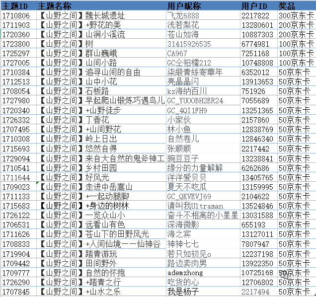 - 如對(duì)獲獎(jiǎng)情況或名單有異議,請(qǐng)與北京時(shí)間2023年5月25日中午12點(diǎn)前聯(lián)系鄭州星部落酋長(zhǎng)@柒緞青絲寄華年,過(guò)時(shí)未聯(lián)系將視為無(wú)異議。 鄭州星部落線上攝影活動(dòng)活動(dòng)簡(jiǎn)介:生活節(jié)奏的加快,我們變得越來(lái)越忙碌,越來(lái)越難以離開(kāi)喧鬧的城市。生活不應(yīng)該只有一成不變的工作,枯燥乏味的柴米油鹽,適當(dāng)?shù)姆潘梢幌?,遠(yuǎn)離城市的喧囂,去山野之間放空自己,體會(huì)下“采菊東籬下,悠然見(jiàn)南山”的意境。攝影主題:【山野之間】活動(dòng)時(shí)間:2023年4月21日-5月15日活動(dòng)獎(jiǎng)項(xiàng): 一等獎(jiǎng)為300元京東e卡,1名 二等獎(jiǎng)為200元京東e卡,2名