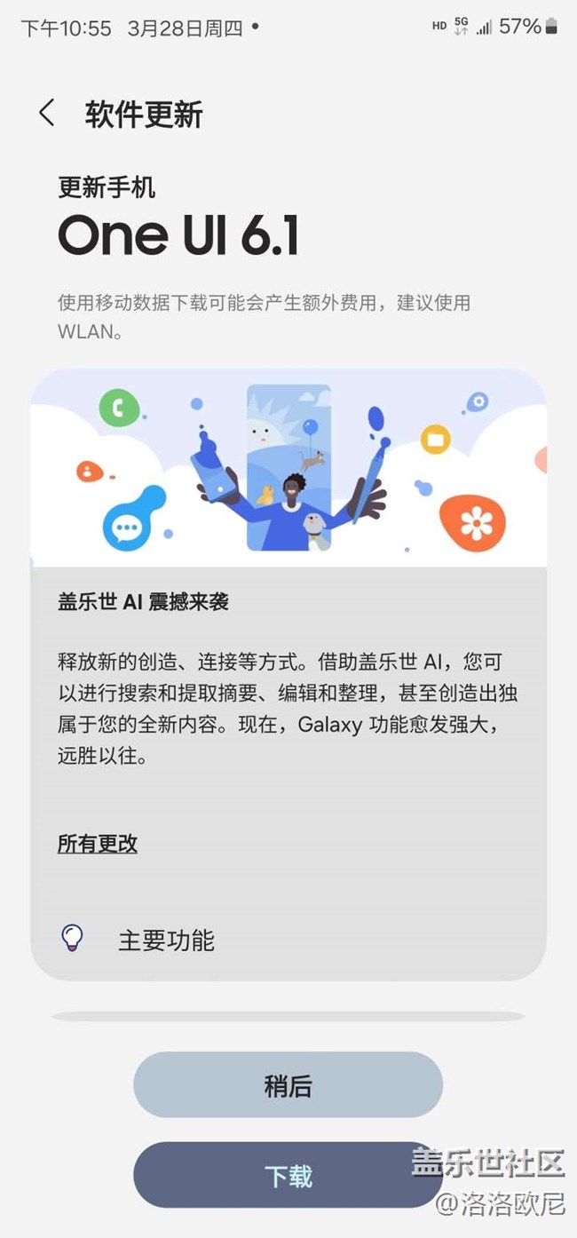 - 二個月內(nèi)連續(xù)購入22u和23u,主要是22u太讓我失望了。使用一個月后果斷放棄,買了23u。買到手還是oneUI5.1,看大家對6.0的評價都不高,一直不敢去升級。直到3.28下午我們酋長在群里通知23系列手機(jī)可以更新6.1了,帶來了24系列全部的AI功能。哈哈??,心動了閉眼沖。果然,很好玩的GalaxyAI ,就好比當(dāng)年第一次玩虹膜解鎖,第一次玩超級慢動作,第一次感受可變光圈??萍紟淼男迈r感無與倫比,感謝三星手機(jī)帶來的新體驗。我的優(yōu)柔白帶上這種透明手機(jī)殼還是最合適的,23u是一部完美的手機(jī)。希望在后續(xù)的GalaxyAI更新中加入更多的功能,向谷歌大模型靠攏。