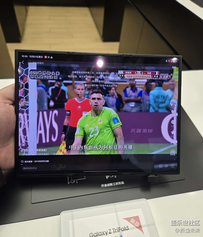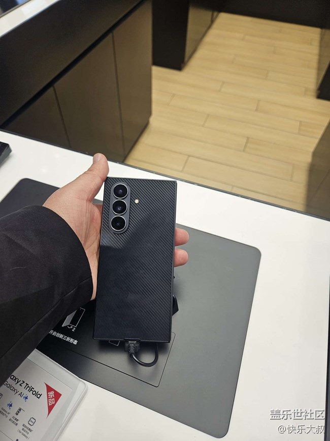 - 本月初,三星在上海發(fā)布了新品手機(jī)。這次沒有發(fā)布會(huì),沒想到寧波三星門店那么快有了樣機(jī)。周末冬至日,寧波星部落酋長(zhǎng)組織大家打卡新品。在門店的c位就是三折疊Galaxy Z TriFold,真不錯(cuò)像個(gè)tab小平板一樣。產(chǎn)品后攝規(guī)格也耐用夠用,G型折疊很好的保護(hù)了內(nèi)屏,還是這個(gè)方案成熟可靠。我們還多一塊獨(dú)立外屏,鋼化玻璃屏幕很安心。中飯?jiān)谔煲粡V場(chǎng)的北疆飯店吃新疆菜,也算是年終聚會(huì)了