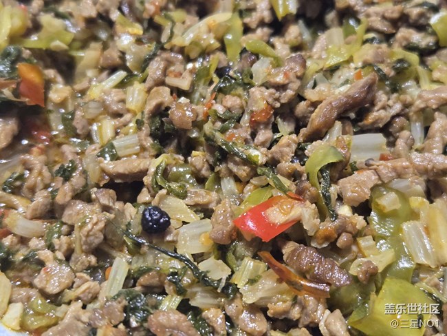 - 把牛肉切碎來炒,很入味。