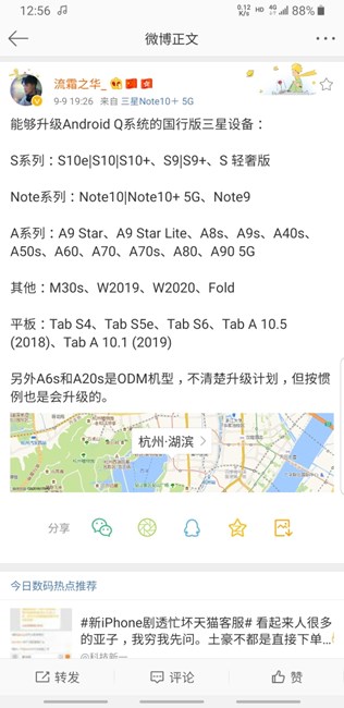 三星公布升級(jí)安卓10的機(jī)型名單!