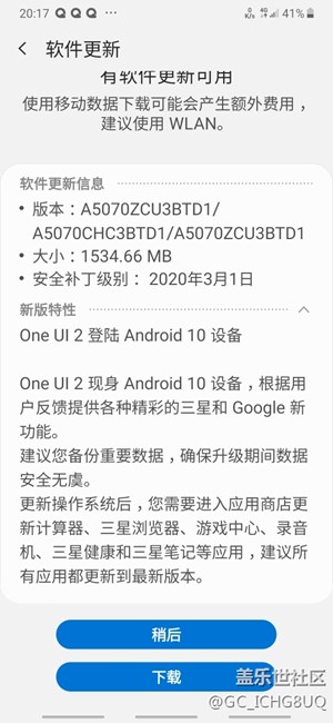 三星a50s 已更新one ui2.0