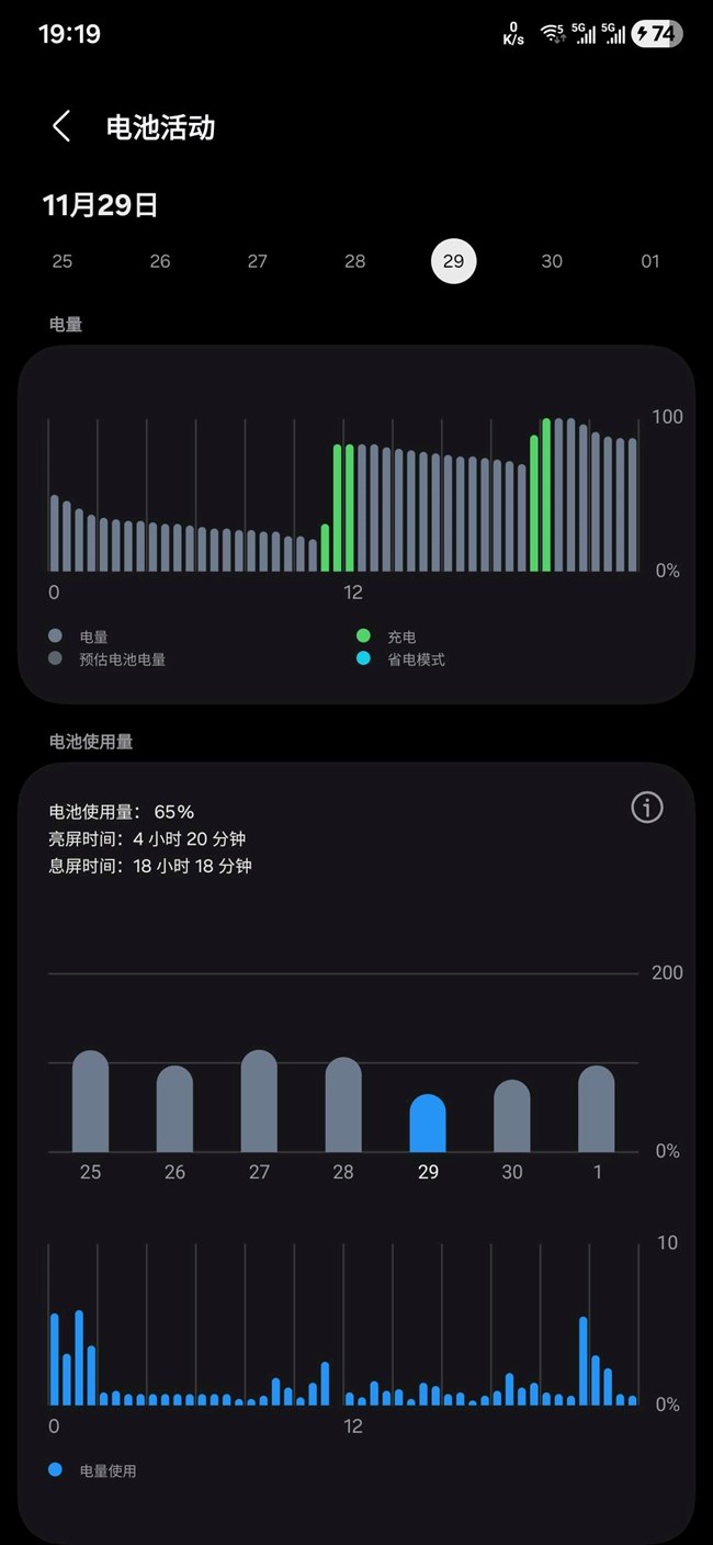 電池77%的量亮屏4小時息屏5.5小時