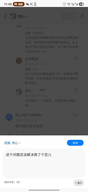 使用更新7.0后的S24U播放音樂實(shí)時窗只滾動第一行歌詞