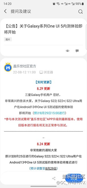 【公告】關(guān)于Galaxy系列One UI 5內(nèi)測體驗(yàn)即將開始