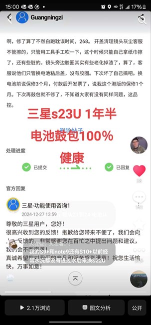 三星s23U 1年半電池鼓包100%健康