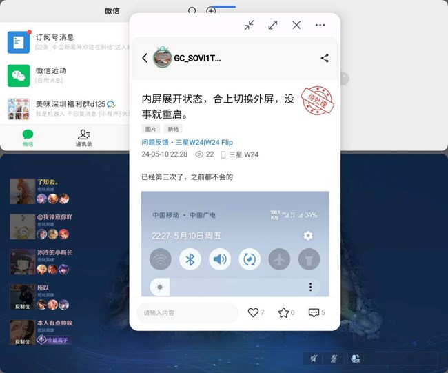 內(nèi)屏展開狀態(tài),合上切換外屏,沒事就重啟。