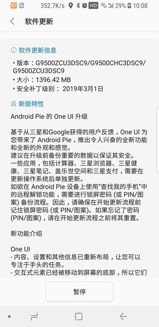 s 8 One ui推送了,