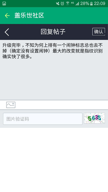 升級完畢,不知為何上排有一個鬧鐘標志總也去不掉(確定沒有設置鬧鐘)最大的改變就是指紋識別確實快了很多。