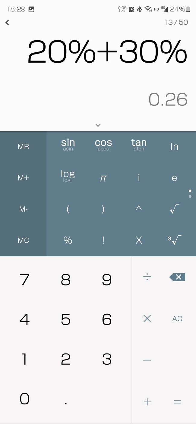 計(jì)算器bug嗎?20%+30%=0.26