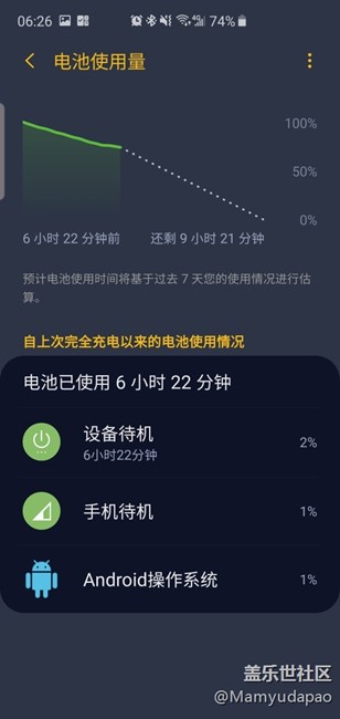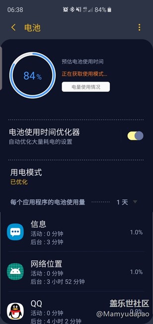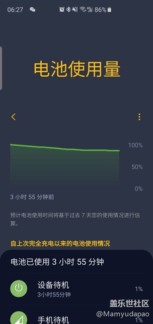 而且電池電量分析待機(jī)沒耗多少電,但是實(shí)際掉的卻多,而且在打字僅僅使用蓋樂世app時(shí)候,10分鐘掉了1%,15分鐘多點(diǎn)掉了2%,看截圖時(shí)間。6點(diǎn)27和6點(diǎn)38,并不是掐著點(diǎn)截的。