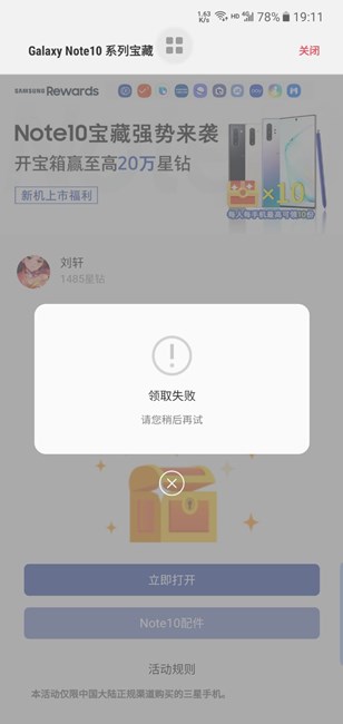 三星星鉆活動(dòng)~三星健康無法領(lǐng)取