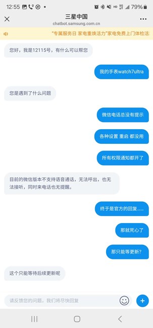 問了三星官方客服,手表版本的微信確實不支持微信電話提示