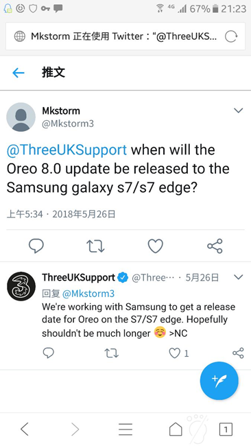 更新oreo,說(shuō)這個(gè)星期,但不知道什么時(shí)間
