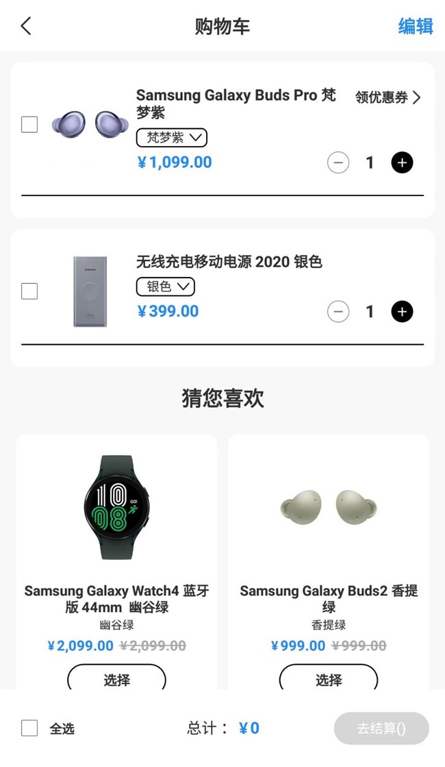 三星網(wǎng)上商城App“8.28周年慶”【互動福利二】曬購物車