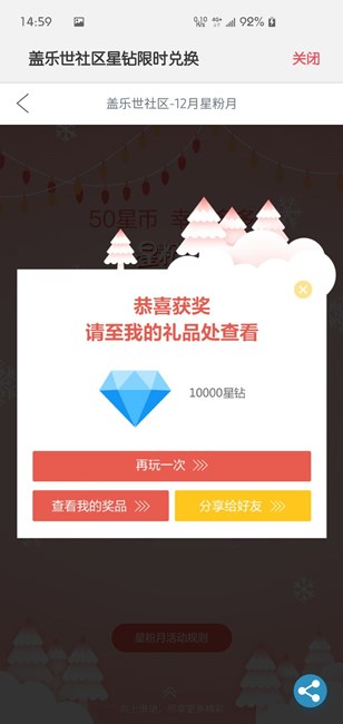 中了10000星鉆