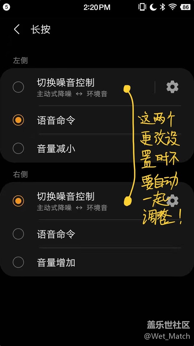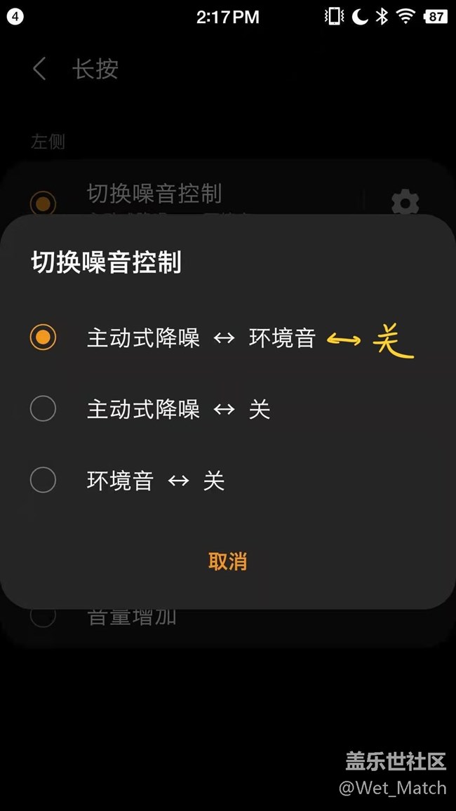 額額額,剛剛收到更新了,確實(shí)增加了這個(gè)功能,但是吧,能不能改成降噪 環(huán)境聲 關(guān)輪流切換啊,你這樣長按只能在兩種模式間輪流切換不合理啊,而且我以為可以把左邊設(shè)置成環(huán)境聲切換成關(guān),右邊是降噪切換成關(guān),但是你這個(gè)app里設(shè)置一邊耳機(jī)長按的功能,另一邊也同時(shí)改變啊,這也太不合理了吧,希望三星加油干?。。?!