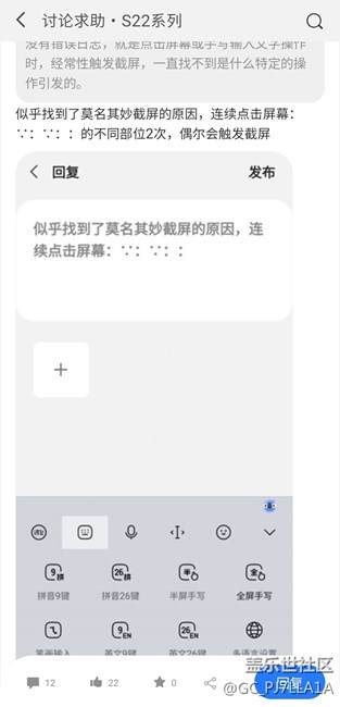s22u最近經(jīng)常在點擊或輸入操作時誤截屏