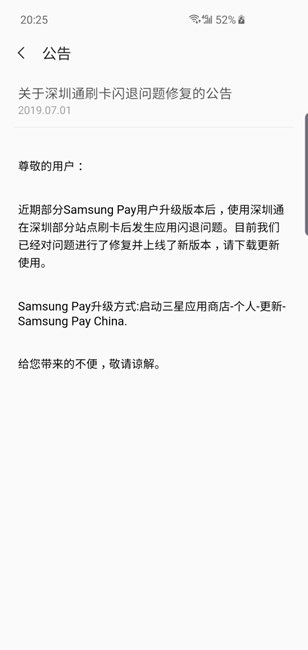 samsung pay有深圳通了嗎?深圳的朋友更新了沒?