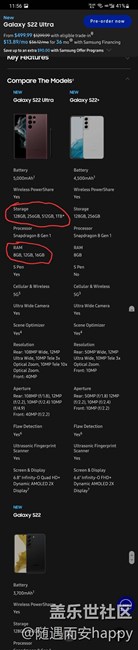 區(qū)別對待?國際版S22 Ultra有16+512,16+1T配置