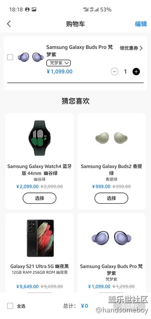 三星網(wǎng)上商城App“8.28周年慶”【互動福利二】曬購物車