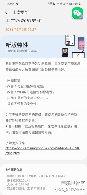 s20+更新系統(tǒng)后微信智能彈出視圖Bug