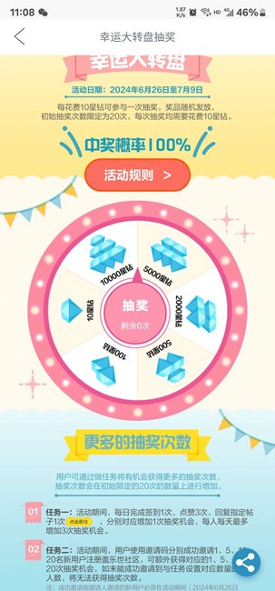 2024年7月1日抽獎(jiǎng)12次獲得星鉆9個(gè),比較差!