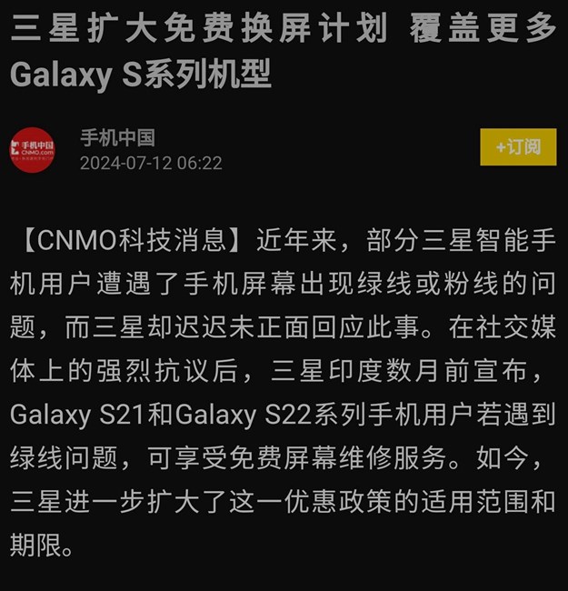 S22U手機(jī)屏幕中間出現(xiàn)一條豎綠線