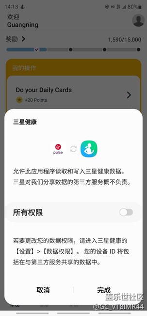 三星健康所有權(quán)限的問(wèn)題