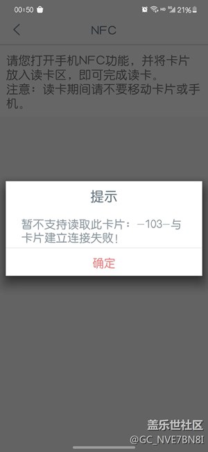 NFC連接總是失敗,提示“103”問題
