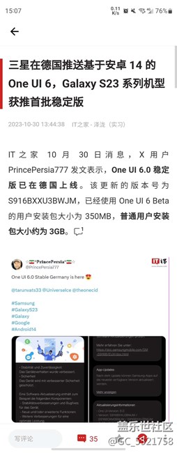 【重磅】關(guān)于Galaxy S23 手機(jī)國(guó)行版推送 One UI 6 正式版
