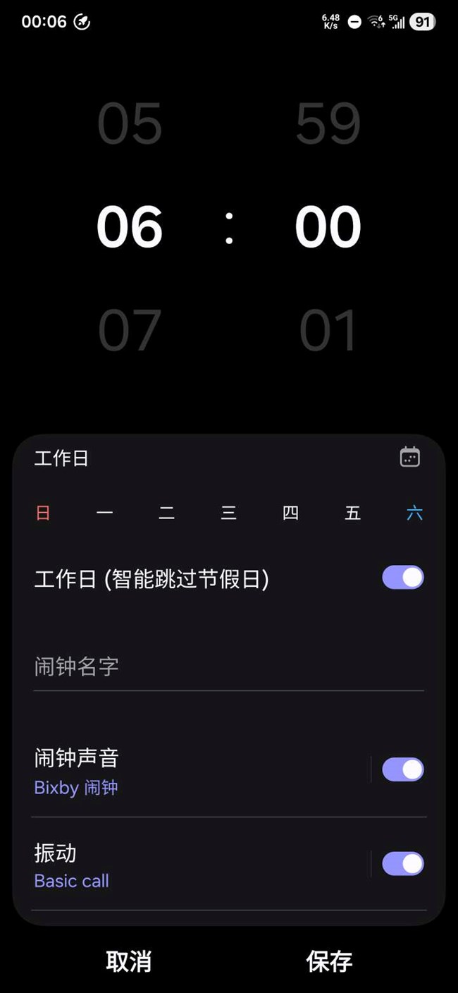 鬧鐘沒有單雙休設(shè)定
