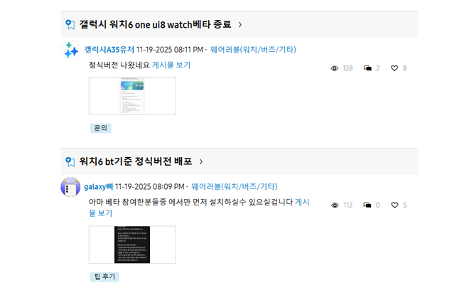https://r1.community.samsung.com/t5/%EC%9B%A8%EC%96%B4%EB%9F%AC%EB%B8%94-%EC%9B%8C%EC%B9%98-%EB%B2%84%EC%A6%88-%EA%B8%B0%ED%83%80/bd-p/kr-community-wear?page=14&tab=recent_topics這兩個(gè)地址是三星官方的社區(qū)地址,可以看到最新的測試動(dòng)向
