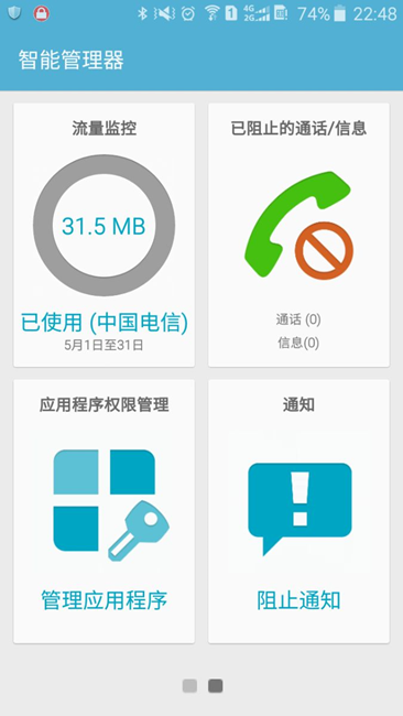 智能管理,進(jìn)去看看能不能智能攔截。A5 2016版可以,S7作為旗艦機(jī)型應(yīng)該可以。我是入門機(jī)型,只能借助第三方安全應(yīng)用。