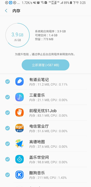 三星S8有724M預(yù)留運(yùn)存不可以用。