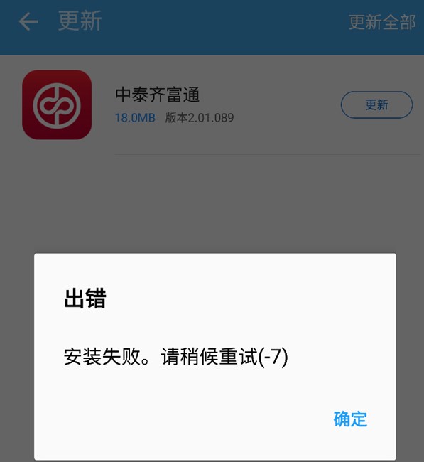 中泰齊富通,更新失敗