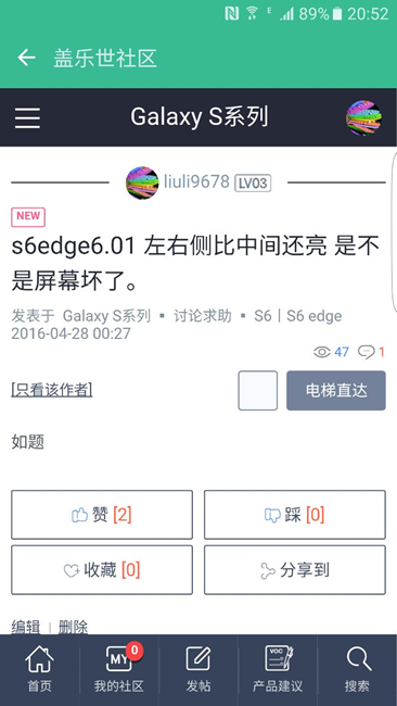s6edge6.01 左右側(cè)比中間還亮 是不是屏幕壞了。